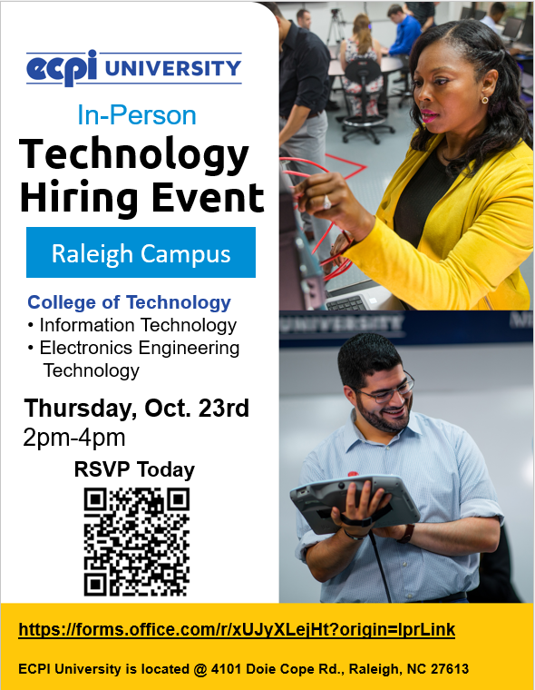 ECPI Career Services is hosting a Technology Hiring Event on Thursday, 10/23/25!